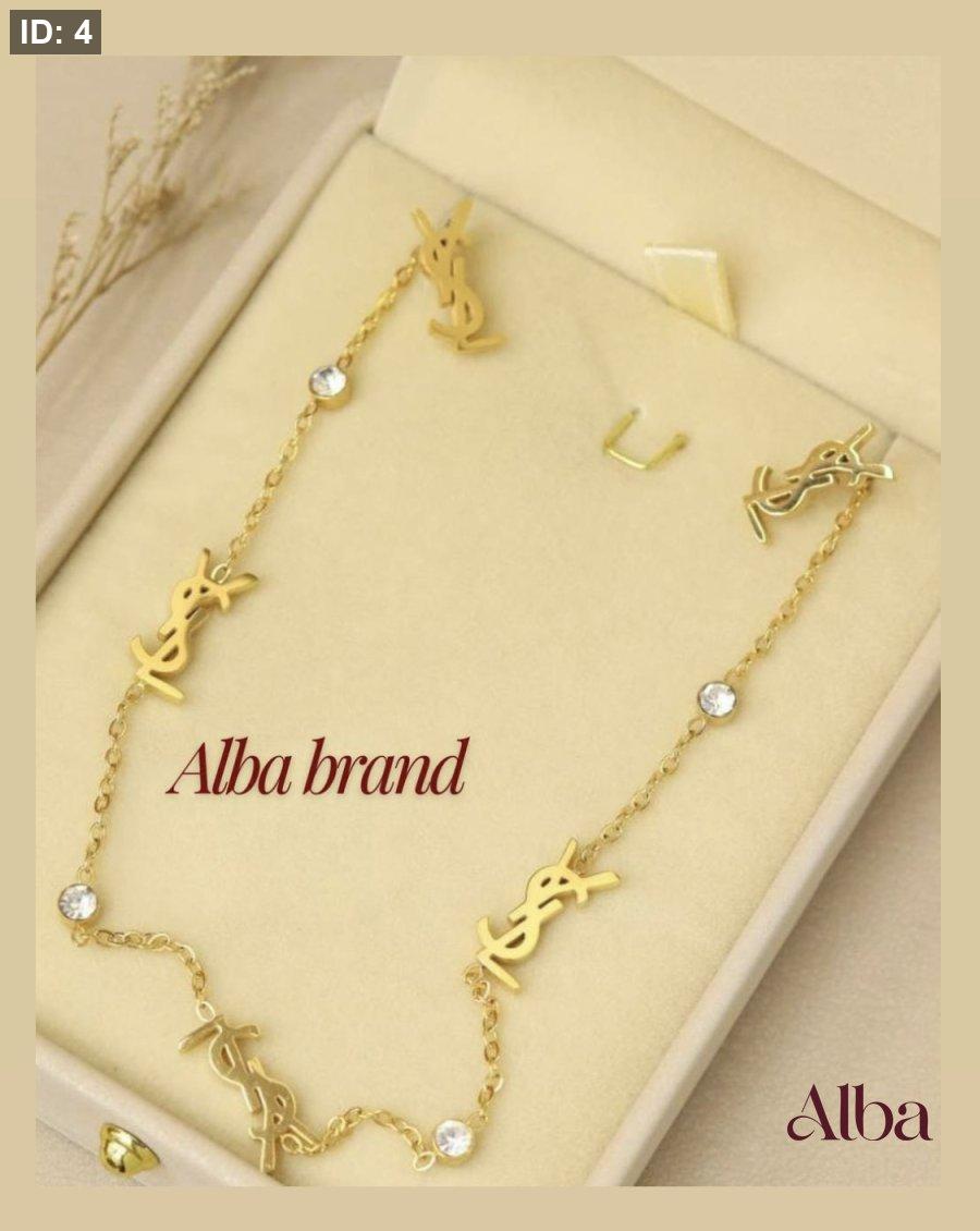 طقم YSL الفاخر، مكون من عقد و حلق بالون الذهبي المكفول اللون لا يخرب أو يتغير، مقاوم للصدأ والتآكل، ومناسب للاستخدام اليومي. قطعة مثالية لإضافة لمسة فاخرة وجريئة لإطلالتك اليومية أو المسائية.