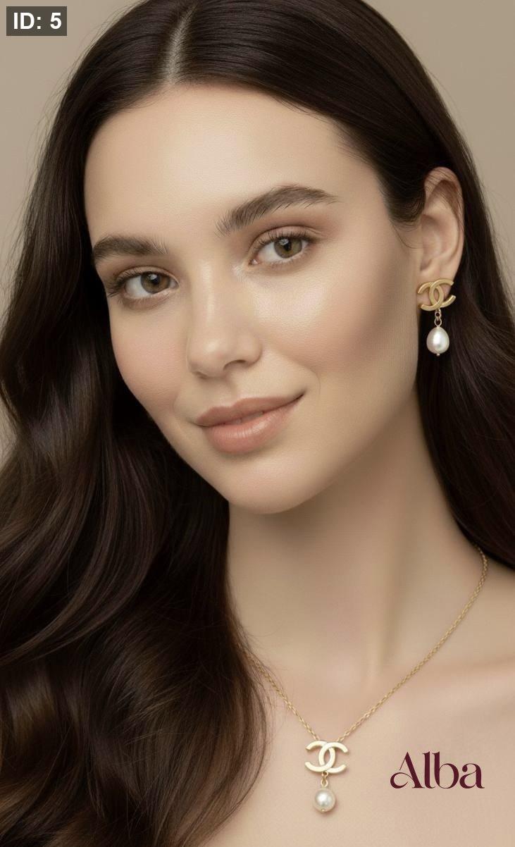 مع طقم شانيل اكتشفي التجسيد الأمثل للرقي الأنثوي مع هذا الطقم الساحر، الذي يجمع بين فخامة اللون الذهبي والجمال الخالد للؤلؤ الأبيض الناصع. مكون من حلق و عقد. اللون : مقاوم للصدأ ولا يتغير وله كفالة.